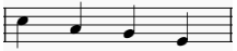 For the notes in each bar, the performer must choose a corresponding sound for each note that must be the same across all iterations of the same note across every bar of the piece. The corresponding sound could be anything the performer chooses. However, the length of the sounds and distance between sounds within bars is free for the performer to choose and can vary between bars.